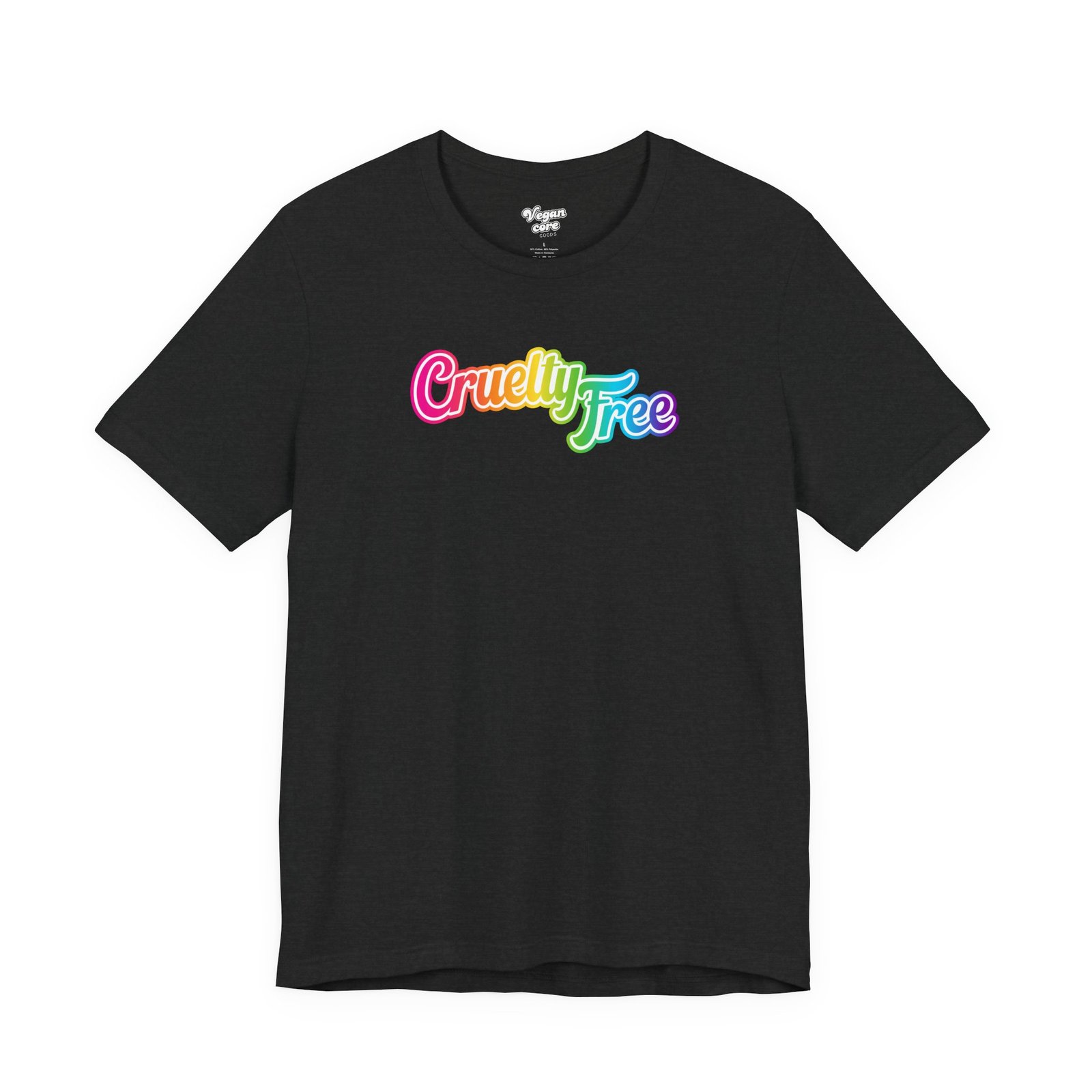 Bring back the colorful vibes of the 90s with this “Cruelty Free” retro rainbow design! Perfect for vegans, animal lovers, and anyone who wants to spread kindness in a bold, fun way. The vibrant ‘Cruelty Free’ print adds a touch of personality while promoting a positive message, making this tee a statement piece for anyone looking to express their values with colorful and nostalgic 90’s style.