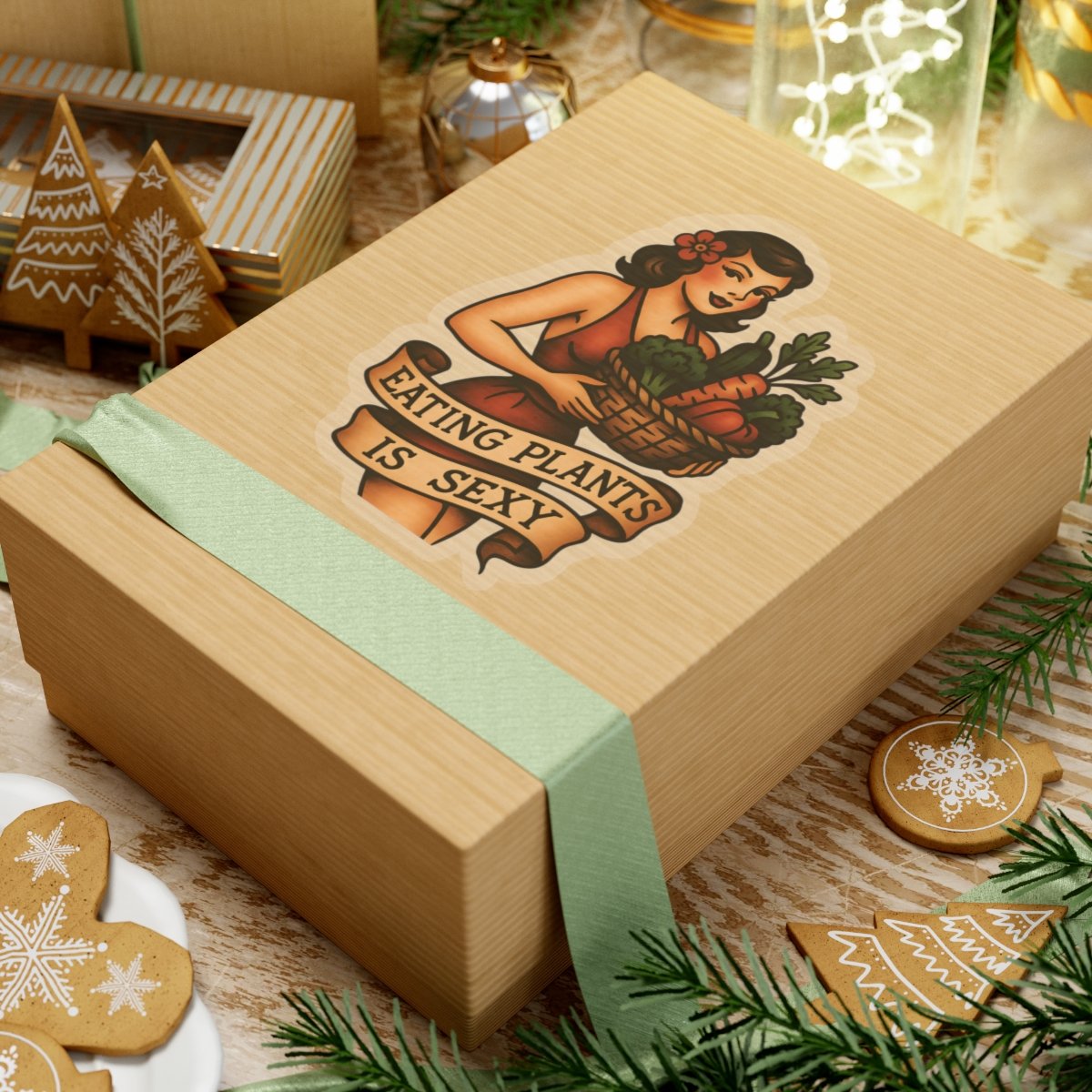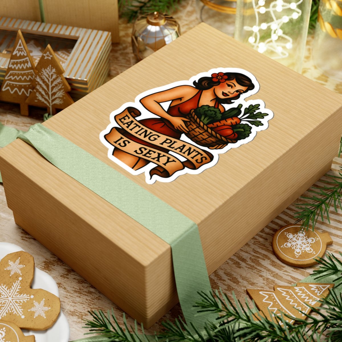 Eating Plants Is Sexy Pin-Up Sticker – Vintage Vegan Flash Tattoo