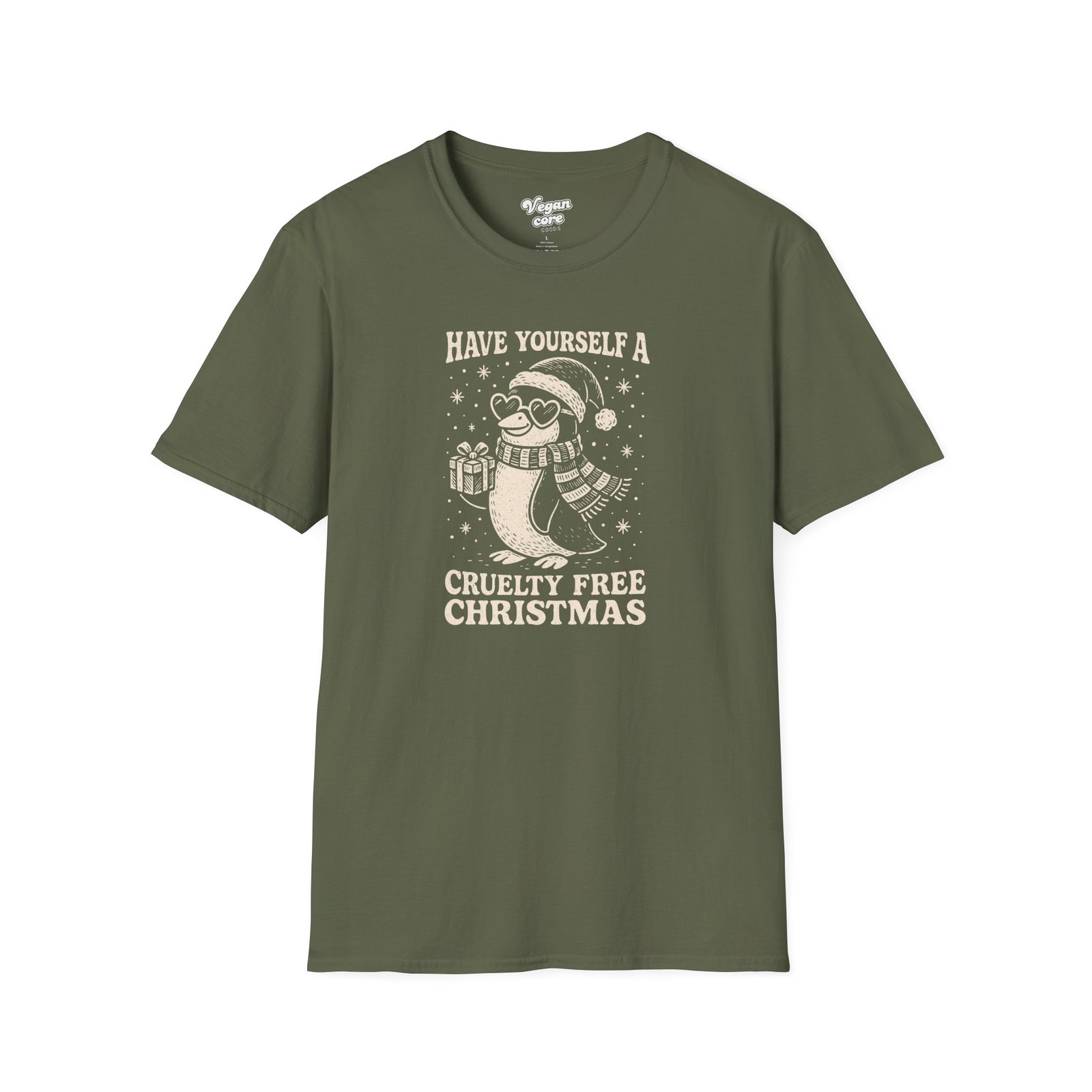 Keep it cool and kind this holiday season with this “Have Yourself a Cruelty Free Christmas” groovy penguin tee. Featuring a cute, gift-giving penguin in heart-shaped shades, this vintage-style design spreads festive vegan cheer with a side of humor. Perfect for animal lovers, eco-shoppers, and plant-based holiday enthusiasts. Cozy, soft, and compassionately cool—just like Christmas should be.