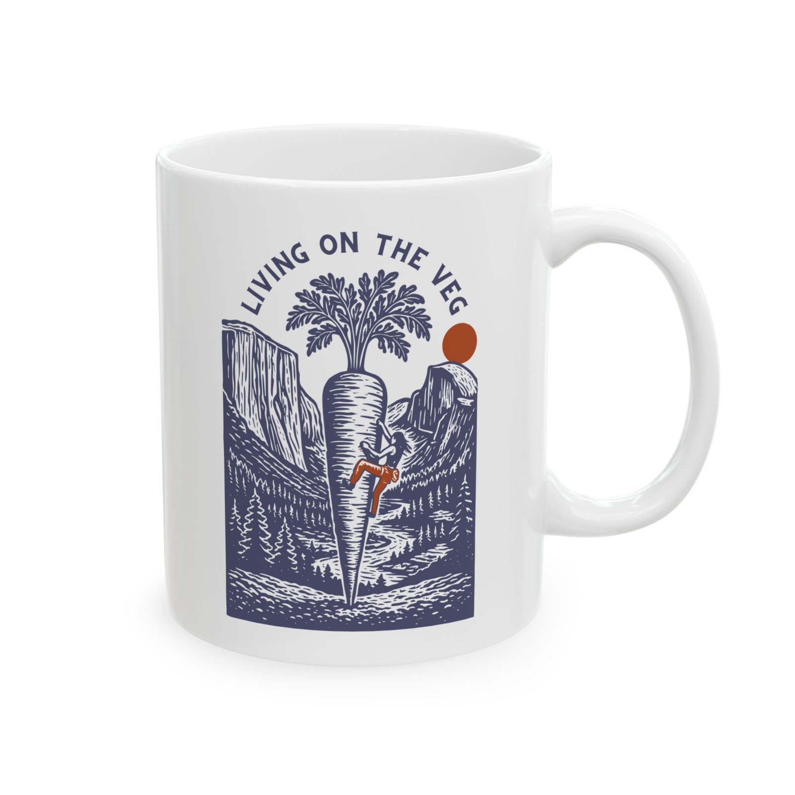 Living on the Veg 🌱⛰️ This bold, vintage-inspired design features a climber scaling a giant carrot monolith in Yosemite Valley with El Capitan and Half Dome in the background. A surreal mix of retro style and vegan outdoor adventure, it’s made for those who love to climb rocks, eat plants, and live cruelty-free.