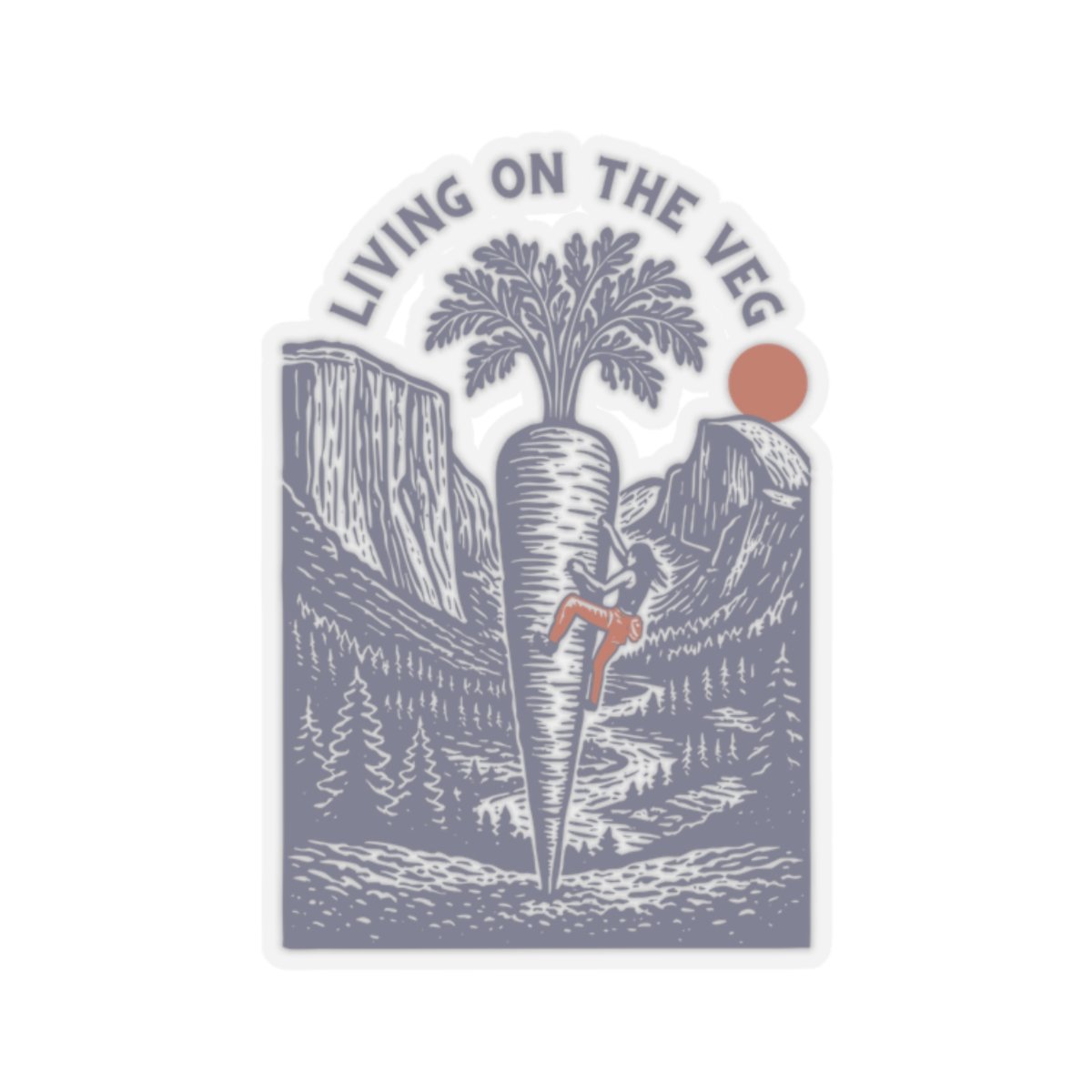 Living on the Veg 🌱⛰️ This bold, vintage-inspired design features a climber scaling a giant carrot monolith in Yosemite Valley with El Capitan and Half Dome in the background. A surreal mix of retro style and vegan outdoor adventure, it’s made for those who love to climb rocks, eat plants, and live cruelty-free.