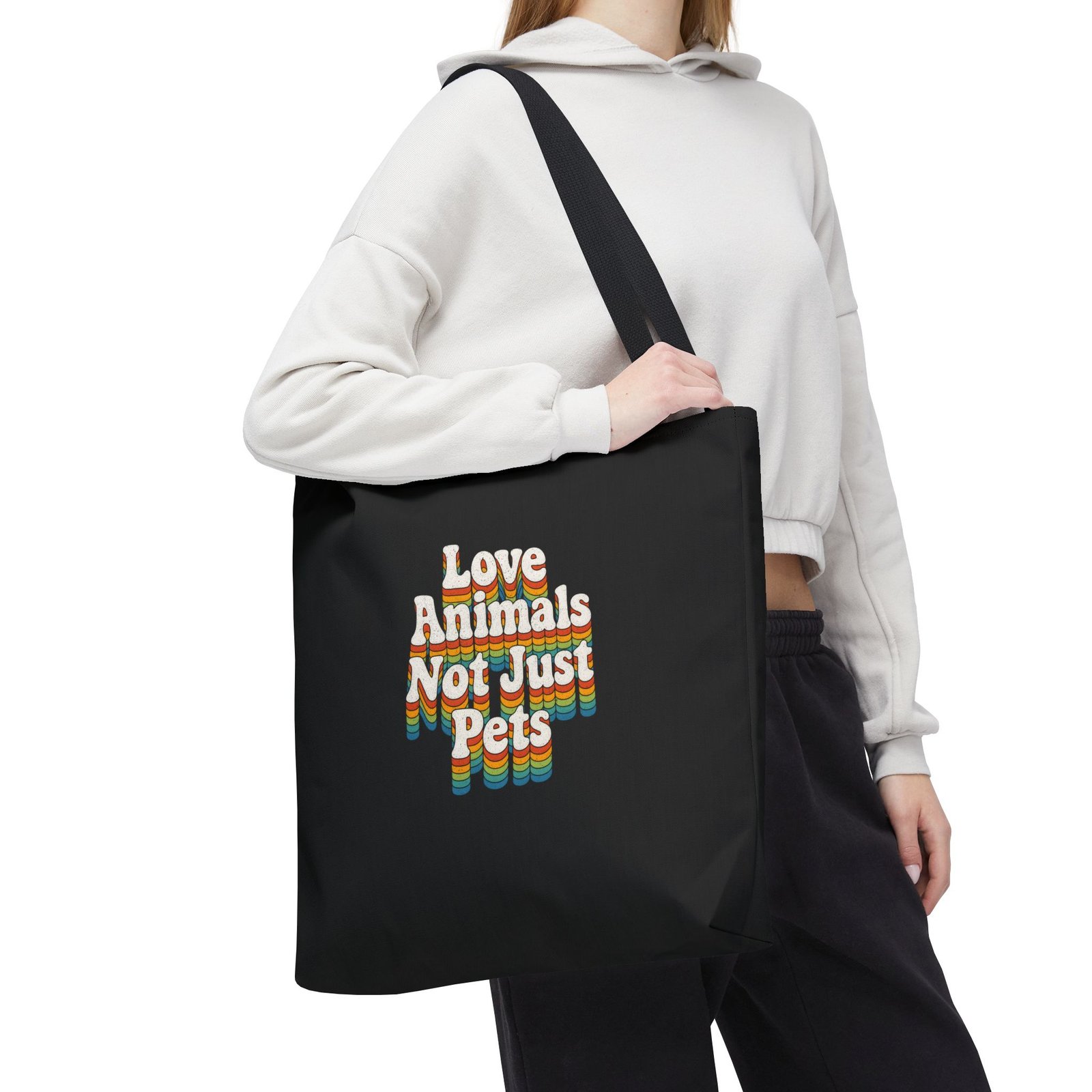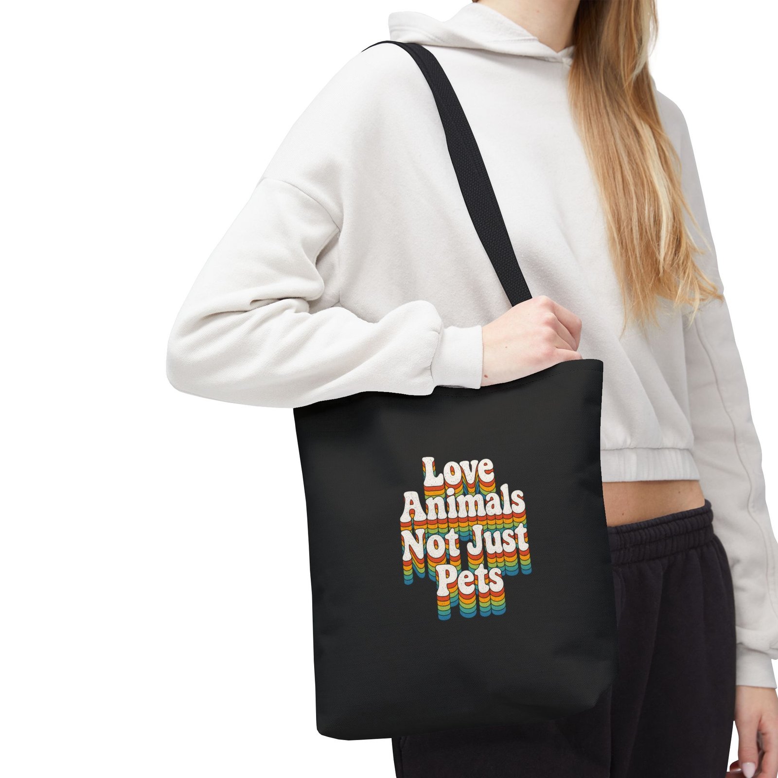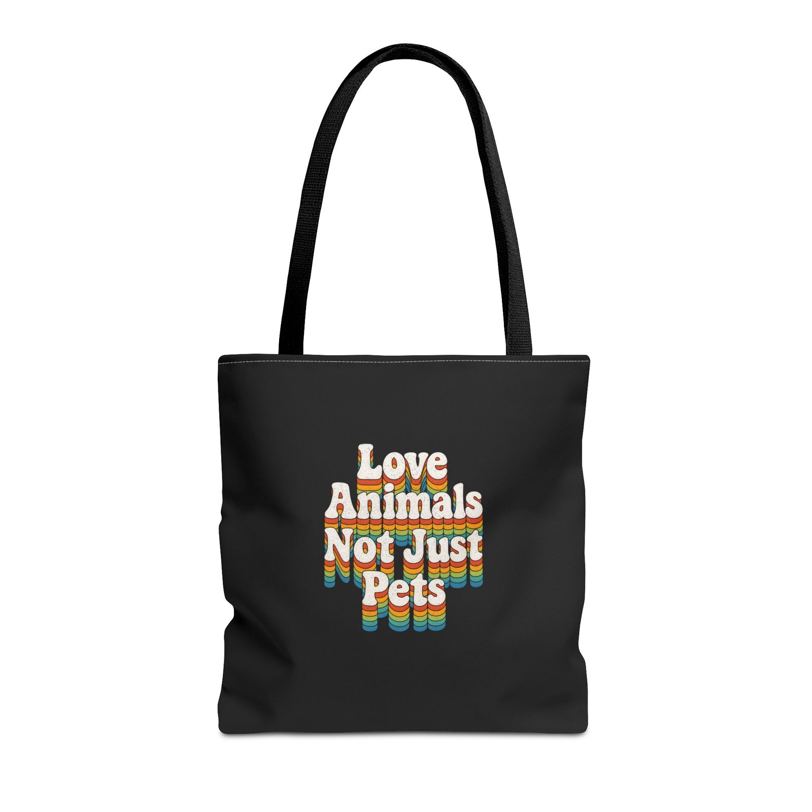 Love Animals, Not Just Pets Retro Rainbow Typography – Tote Bag