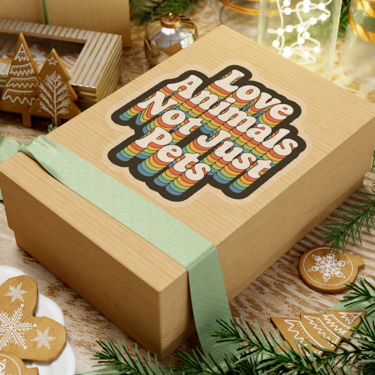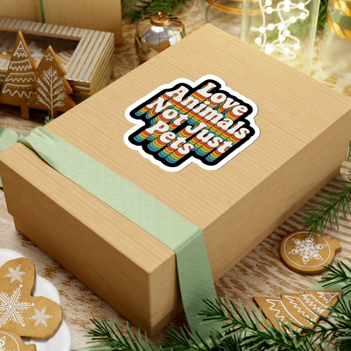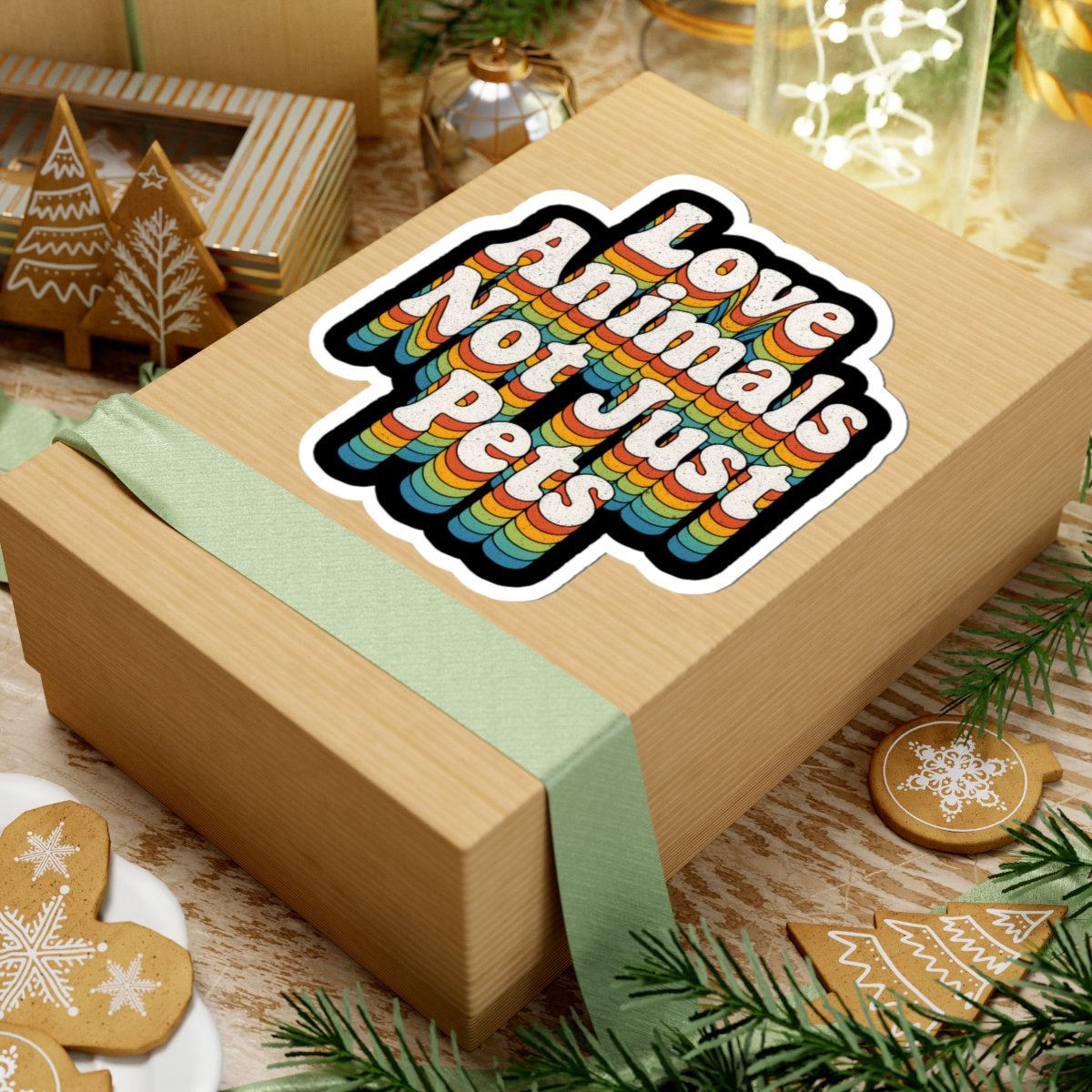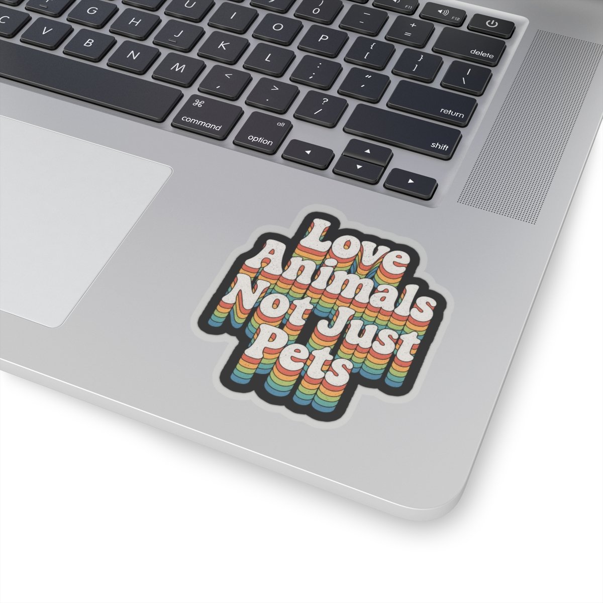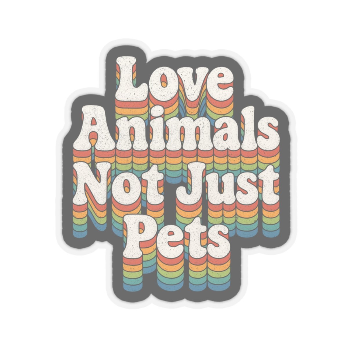 Love Animals, Not Just Pets Sticker – Retro Rainbow 70s Typography