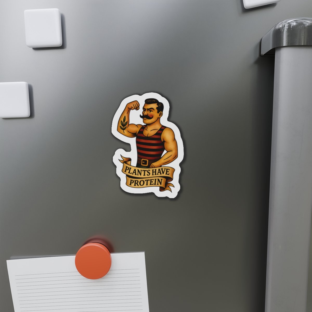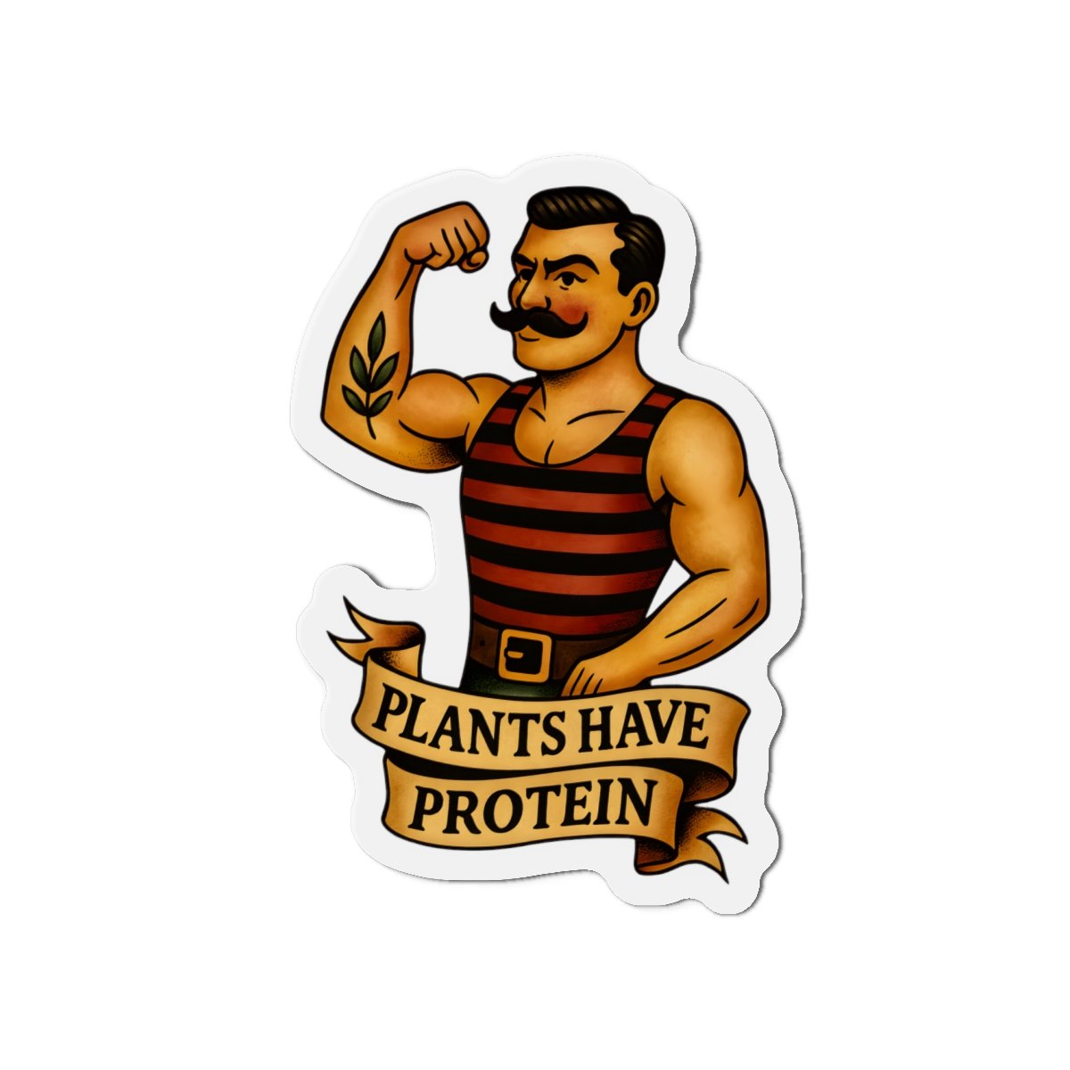Show off your vegan strength with this “Plants Have Protein” Strongman Magnet — a bold, retro tattoo-inspired design featuring a classic weightlifter flexing his plant-powered muscle. Perfect for anyone who believes compassion and strength go hand in hand.