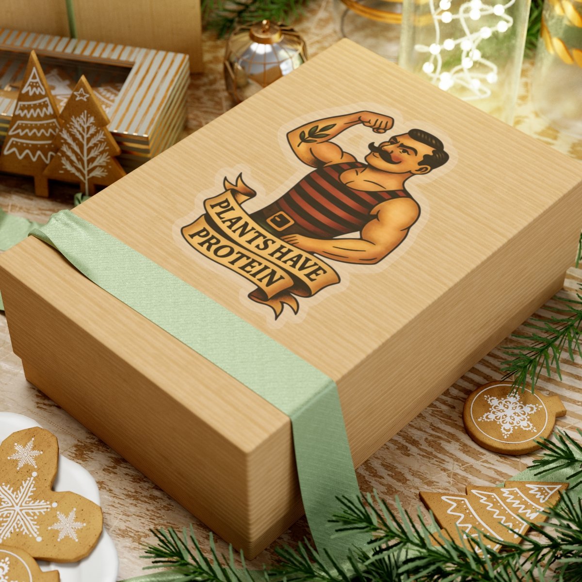 Show off your vegan strength with this “Plants Have Protein” Strongman Sticker — a bold, retro tattoo-inspired design featuring a classic weightlifter flexing his plant-powered muscle. Perfect for anyone who believes compassion and strength go hand in hand.