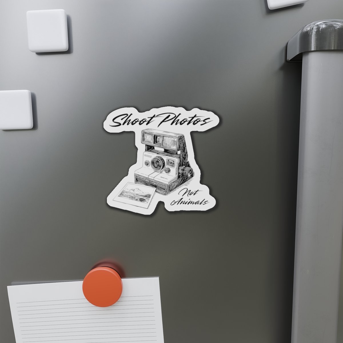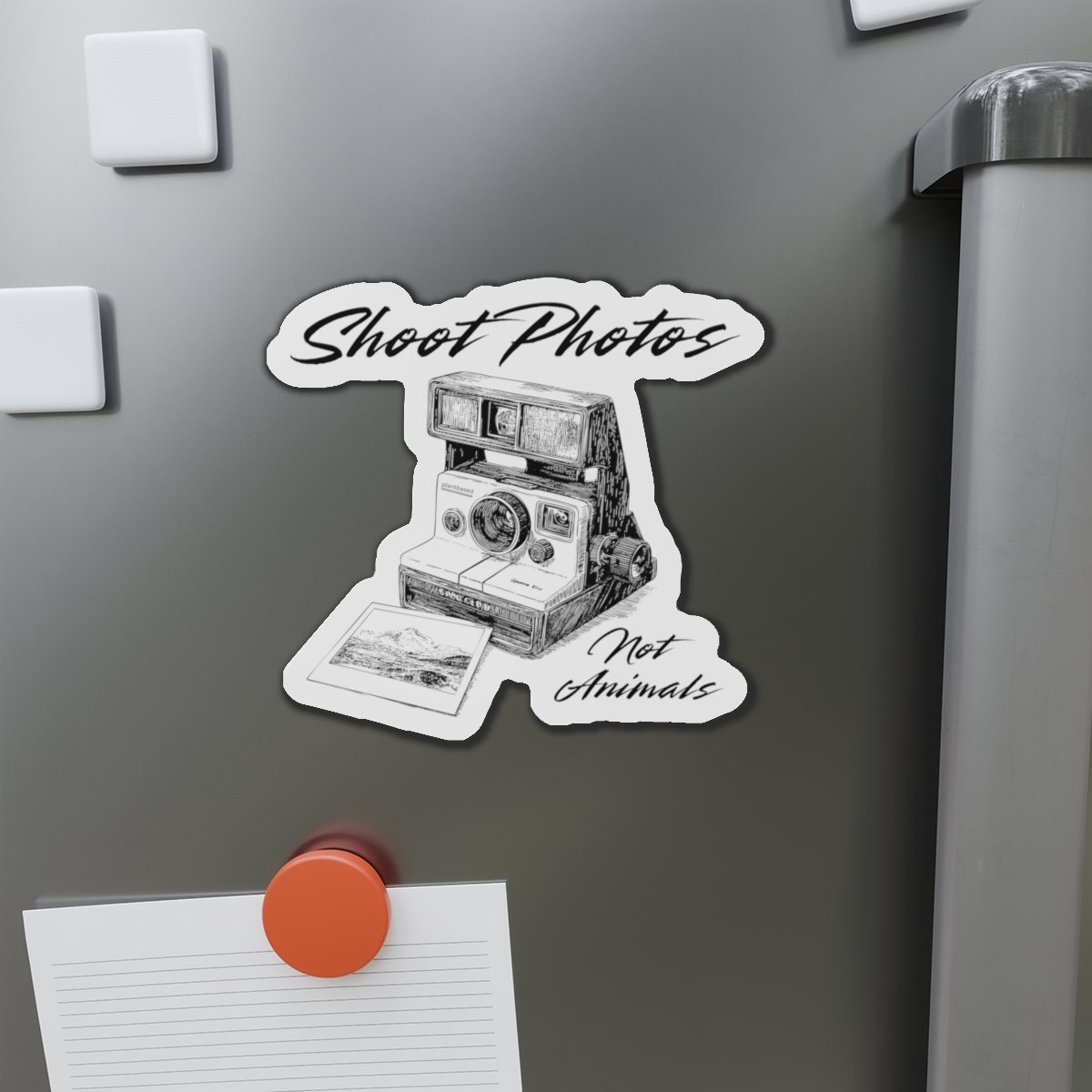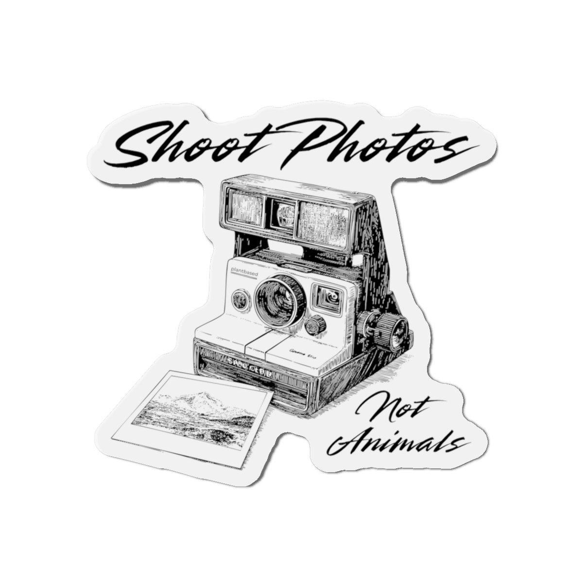 This “Shoot Photos, Not Animals” design features a retro Polaroid camera with a powerful vegan and animal rights message. Perfect for animal lovers, photographers, and activists who want to wear their values with style. Spread compassion while keeping it vintage-cool.